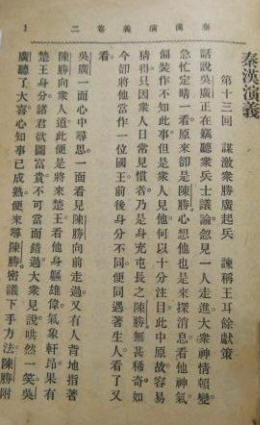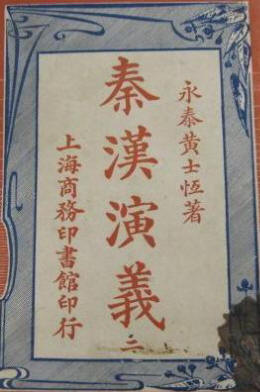 秦漢演義,4冊48回。題永泰黃士恒著。民國6年(1917年)5月,商務印書館初版。又名《秦史演義》,網上多稱《秦朝野史》。 本書敘述從秦始皇統一天下,到漢王朝建立。主要講秦漢之際楚漢相爭故事。文字通俗易懂、文筆流暢。民國時曾再版多次。 黃士恒,清末民初,福州永泰人,生平不詳。光緒三十年十二月(1905年1月)前後,與兄弟黃士複捐資創辦西城兩等小學堂,並自任堂長。