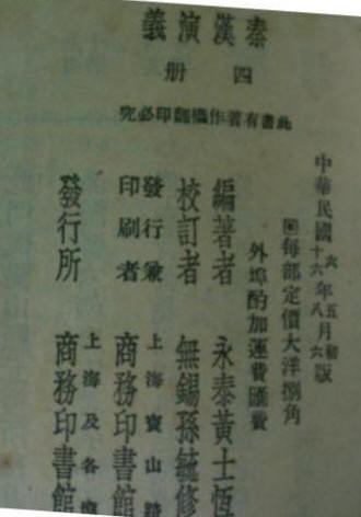 ↑秦漢演義,民國6年5月初版、民國16年8月6版
