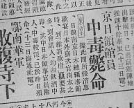 《申報》關於毒酒案的報導 毒藥是軍統局給了我姑父潘崇聲姑父後來把藥交給了我哥,我哥晚上帶回家的。過去嘛,全家不管有多少房大家都住在一起。晚上我哥跟我講,說「你看,藥已經拿來」,我看到是一個很小的,小針頭這麼粗的瓶子,藥不多。上面有USA三個字母。這個藥是由軍統局提供的。我手上有一把鑰匙,這把鑰匙足有半斤重,領事館裡大大小小的櫃子都歸我管,所有吃的喝的也由我來管。酒是有專門的人採購來的。這次宴會的酒是從南京中華路老萬泉酒店買的,這是一個老字型大小的酒店,全國各地、包括世界各地的一些名酒都有。日本人最愛喝中國黃酒,黃酒稱為老酒。喝黃酒的時候要溫熱。黃酒越熱越好,人喝了不會醉,喝了以後不上頭。我藥拿到手以後,在當天下午四點鐘就倒在一個溫桶裡,就是一個溫黃酒的瓶子裡面,然後倒了一點點黃酒搖了搖,晃勻了以後,放好,放在了一個過道的櫃子底下,不太引人注意的地方。臨開席之前,我把這瓶毒酒倒在一個大瓶子裡面,為了防止那些傭人們隨手亂拿。我最怕下人們自己去拿酒,這些酒吃了就不得了。所以必須把酒藏好,放在櫃子的最裡面。開席之前,我把酒端上去了,端上去時還是有些擔心,因為是好幾桌嘛,怕不勻,不能讓他們自己倒,我一個一個給他們倒好。宴會開始以後,我佯裝肚子疼,正好碰上一個叫劉玉山的僕人,我說我肚子疼,看一下醫生拿點藥就回來。我跟他打了個招呼就從後門溜走了。我在放完藥之後,總認為這個藥藥量太少,這個藥叫氰化鉀,氰化鉀雖是劇毒,一沾到就死,但太少了,效果也不理想。幸虧他們死了兩個,如果要不死兩個。說真的,我可能也活不到今天。上面會懷疑你,懷疑你沒有真幹。你小子玩弄我們,死的這兩個保了我們全家的命。否則後果不堪設想,這是當時歷史的情況。